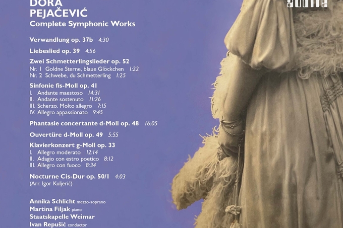 Poznati njemački orkestar iz Weimara, čiji korijeni sežu u 15. stoljeće, snimio je djela Dore Pejačević pod ravnanjem maestra Ivana Repušića, koji je od prošle sezone šef dirigent Orkestra. Kao solistice, na CD-u sudjeluju naša istaknuta pijanistica Martina Filjak i njemačka operna zvijezda, mezzosopranistica Annika Schlicht. Na izdanju se nalaze Pjesme za glas i orkestar, Simfonija u fis-molu, op. 41, Koncertantna fantazija za glasovir i orkestar u d-molu, op. 48,  Uvertira za veliki orkestar u d-molu, op. 49, Koncert za glasovir i orkestar u g-molu, op. 33 te Nokturno u Cis-duru, op. 50/I u aranžmanu Igora Kuljerića.